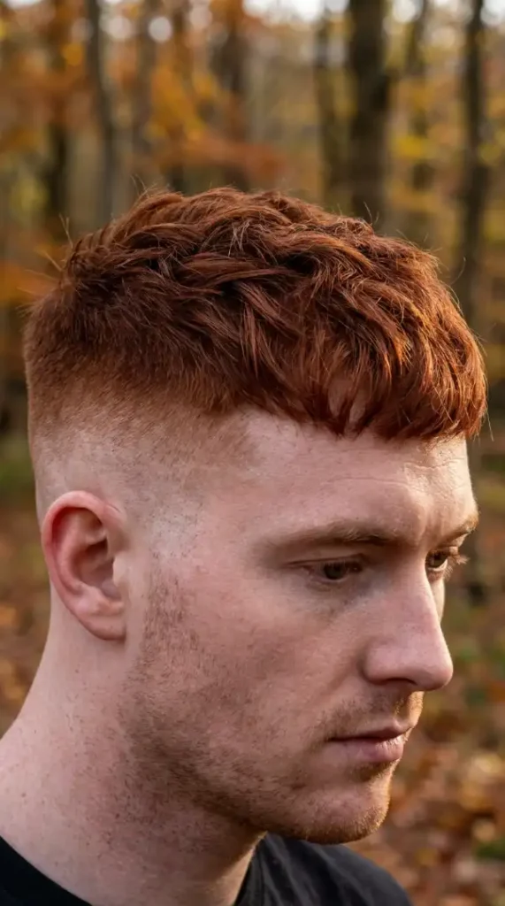 For men with Rectangular or Long faces, the Copper Textured Caesar breaks up the length of the face. The natural volume of red or coarse hair provides a “messy but intentional” vibe that requires very little product.