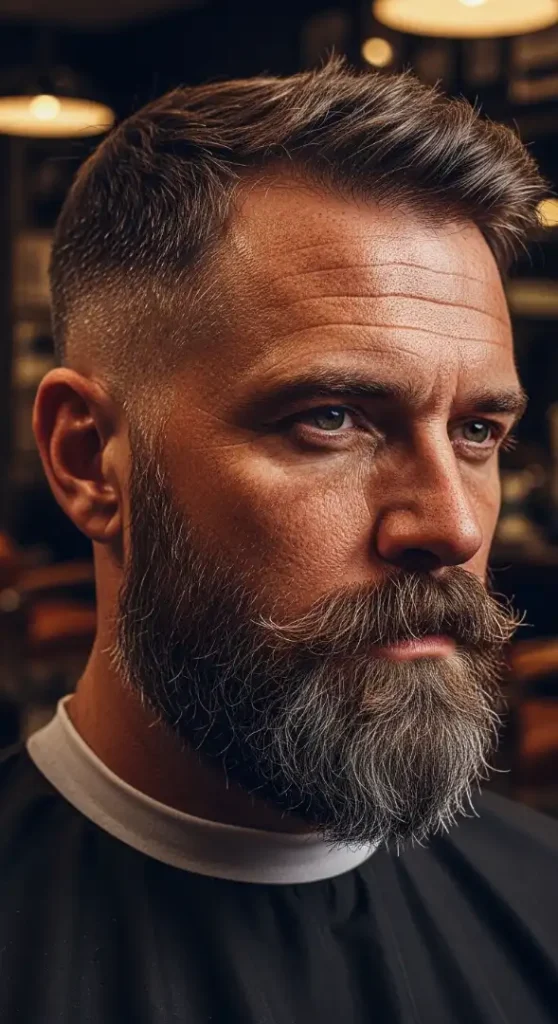 A: If you have a round face, a buzz cut alone might emphasize it. However, pairing it with a thick, angular beard (trimmed into a ‘V’ shape) creates a slimming effect that sharpens the chin and compensates for the lack of hair height.