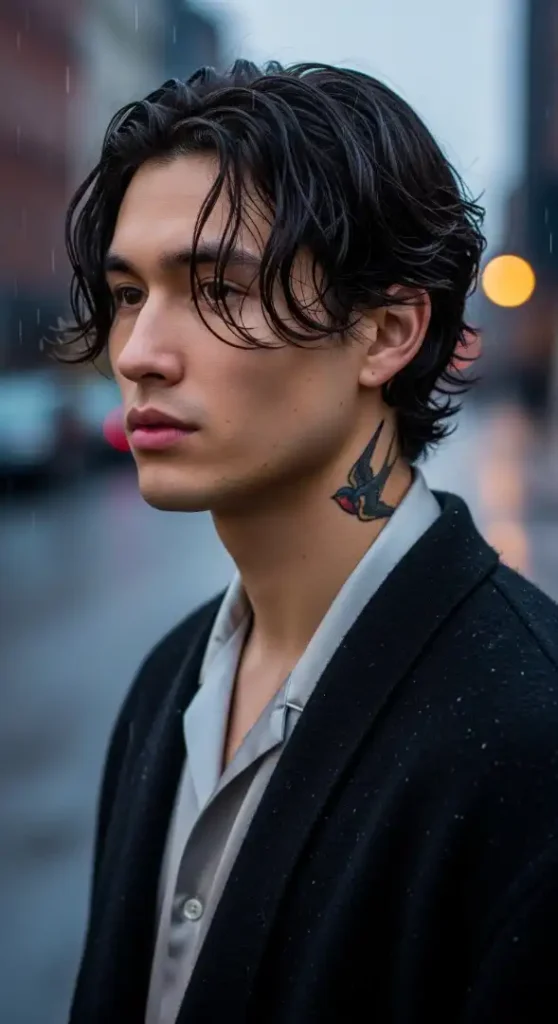 The Ethereal Curtain Flow is the 2026 evolution of the 90s heartthrob look. It’s particularly effective for men with “fine but dense” hair. Unlike the flat curtains of the past, the “Edgy” version uses Internal Point-Cutting to create airiness and volume. This style is an “EEAT” masterpiece because it bridges the gap between Gen-Z trends and timeless male grooming. It frames the face perfectly, making it the #1 choice for softening “Sharp” or “Angular” features.