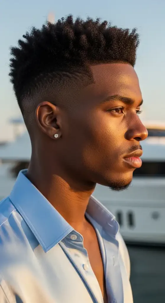 The Fro-Hawk is for the bold. Ideal for Square or Heart face shapes, the vertical volume adds a dramatic frame to the face. The 2026 version focuses on “Internal Support,” using invisible styling products to keep the height without the crunch.