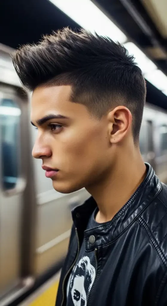 The Faux Hawk is an aggressive way to create volume for fine hair. When all the hair is gathered toward the center, it automatically looks thicker. This is best for Round face shapes as it slims the appearance of the face. Your grooming kit should include a strong-hold matte clay and volumizing powder. Maintenance is high as it requires daily setting. Tell the barber: “Mid-fade the sides and point-cut the center to 3 inches so I can style it into a hawk.”