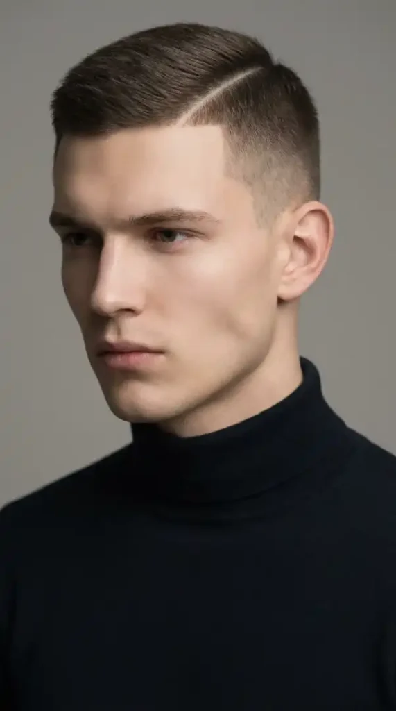The short crew cut with a hard part is a refined yet bold hairstyle that blends classic simplicity with modern edge. The hard part adds a precise line of definition that separates hair sections, giving the style an intentional and clean aesthetic. This haircut is especially flattering for men with straight to slightly wavy hair, and it enhances facial proportions for oval and angular face shapes. Easy to maintain and versatile in styling, it works for everything from business meetings to weekend plans. A touch of light gel or wax keeps the hard part crisp and the top neatly styled throughout the day.