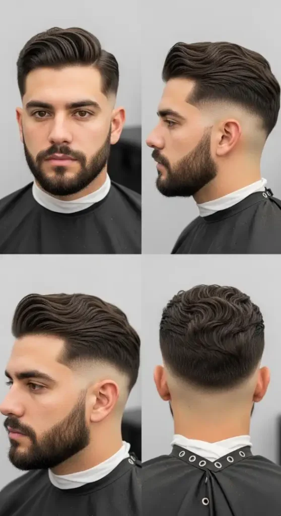 • Barber visit frequency: Every 2.5–3 weeks — the high skin fade and the pompadour’s structural integrity are both demanding; the fade base becomes visible within 10 days; the pompadour top grows beyond 4 inches and becomes too heavy to maintain the lifted front section beyond 4 weeks
